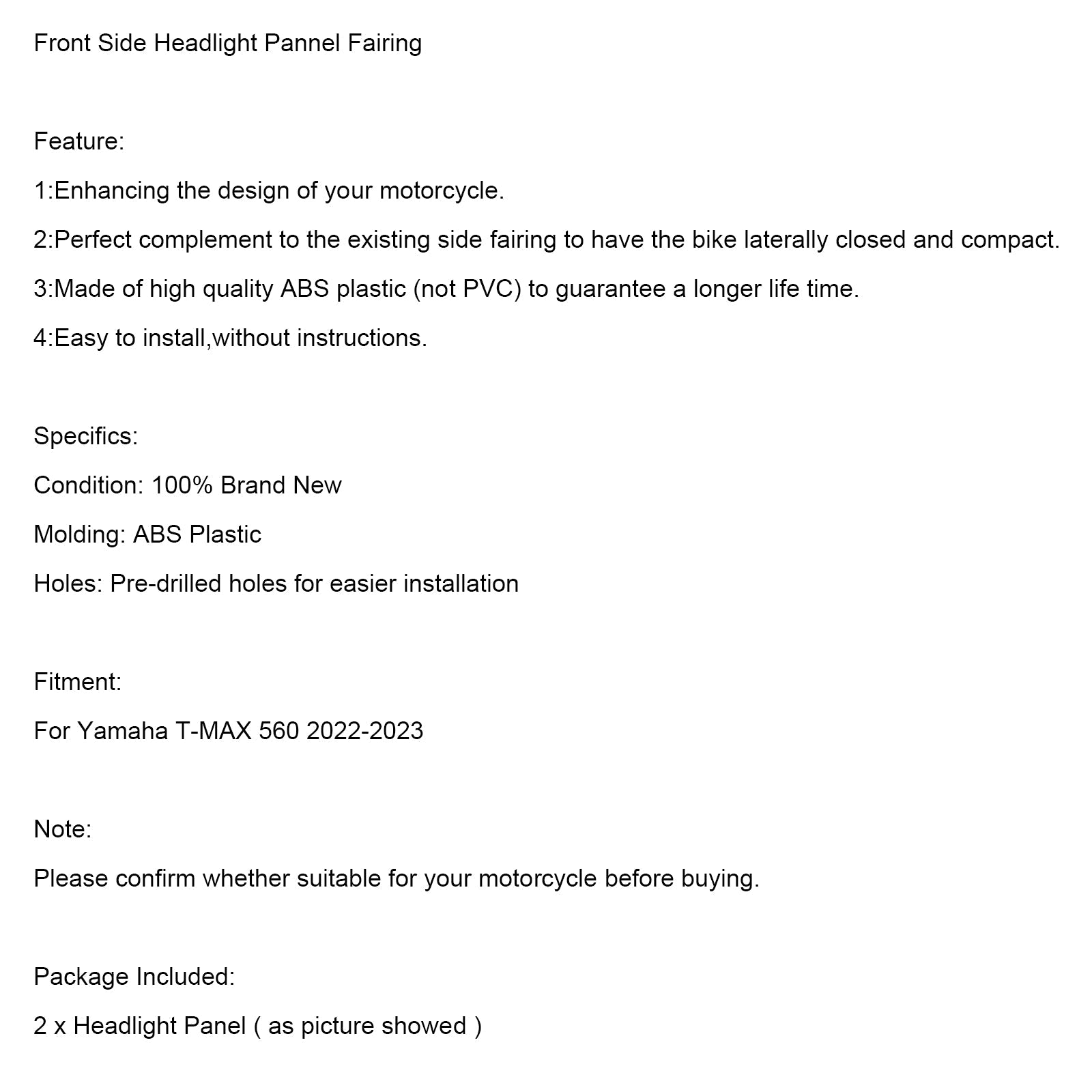 2022-2023 ヤマハ T-MAX 560 フロントサイドヘッドライトパネルフェアリング