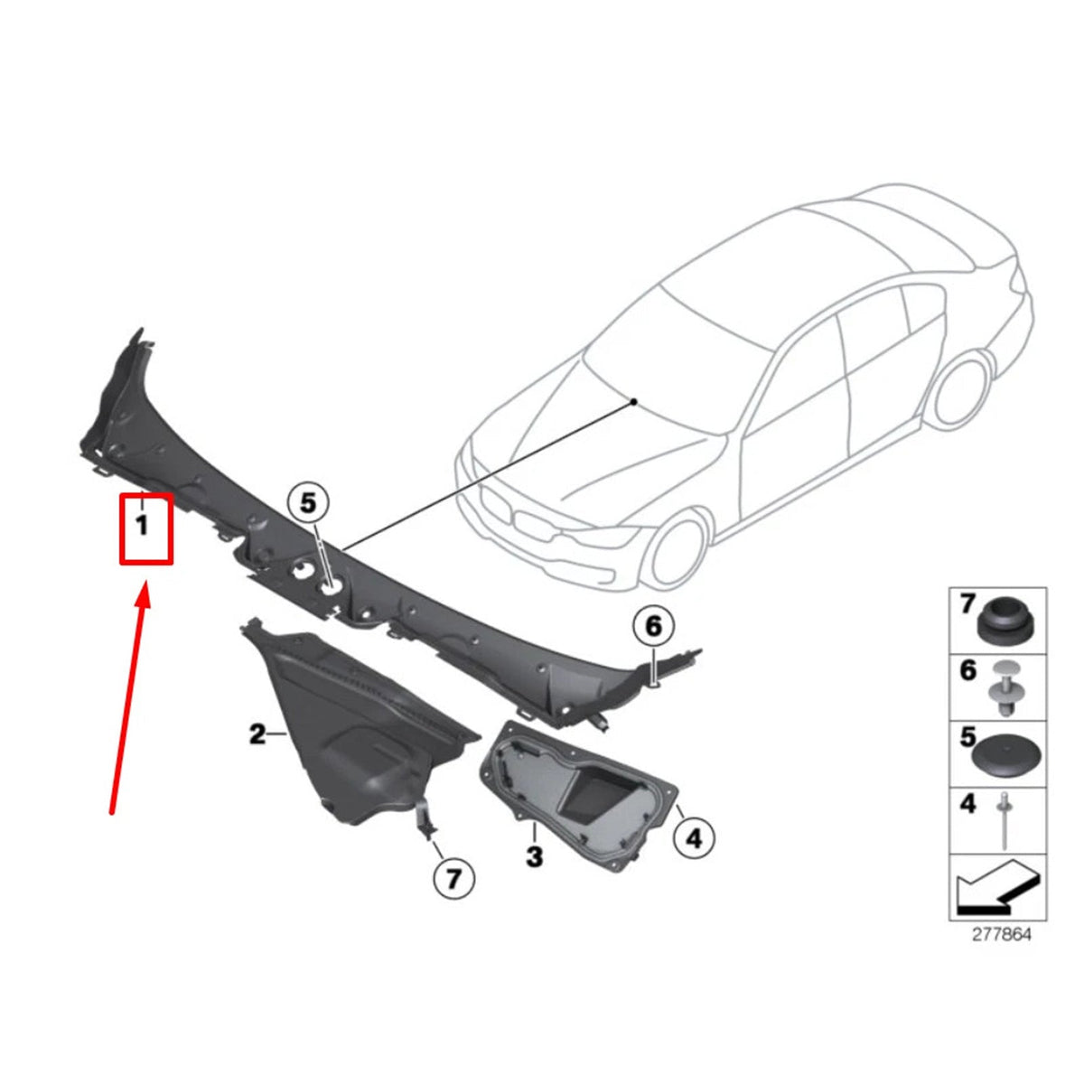 フロントワイパーカウルトリム×1