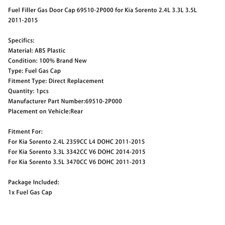 燃料フィラーガスドアキャップ 69510-2P000 Kia Sorento 2.4L 3.3L 3.5L 2011-2015用
