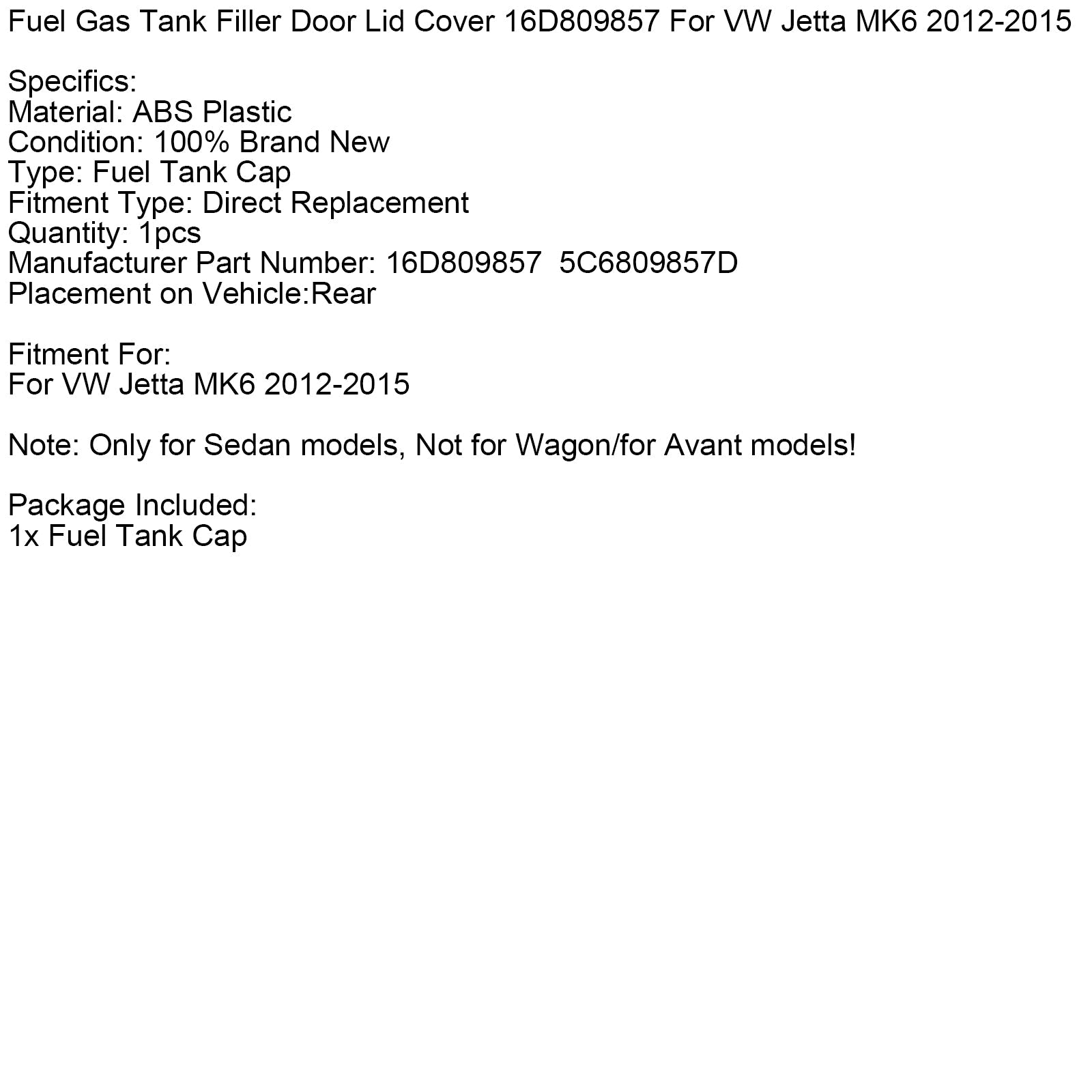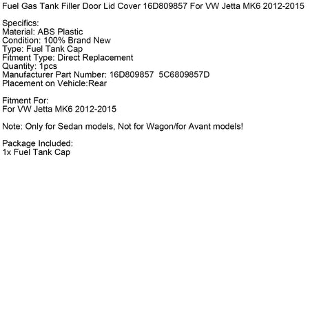 燃料ガスタンクフィラードア蓋カバー 16D809857 VW Jetta MK6 2012-2015用