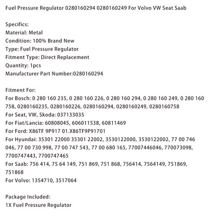 燃料圧力レギュレーター 0280160294 0280160249 Volvo VW Seat Saab用