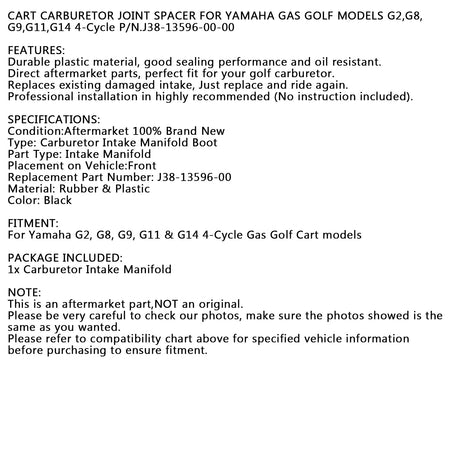 カート キャブレター ジョイント スペーサー ヤマハ ガス ゴルフ モデル G2、G8、G9、G11、G14 4 サイクル P/N.J38-13596-00-00