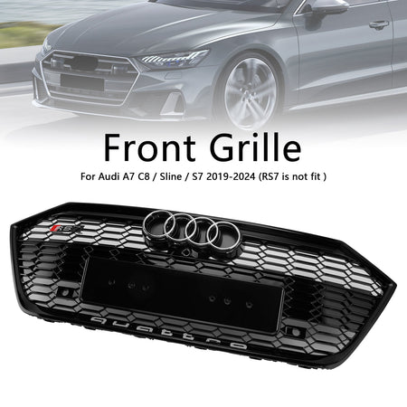 グロスブラックフロントバンパーグリルグリル Audi A7 C8 S7 2019-2024に適合