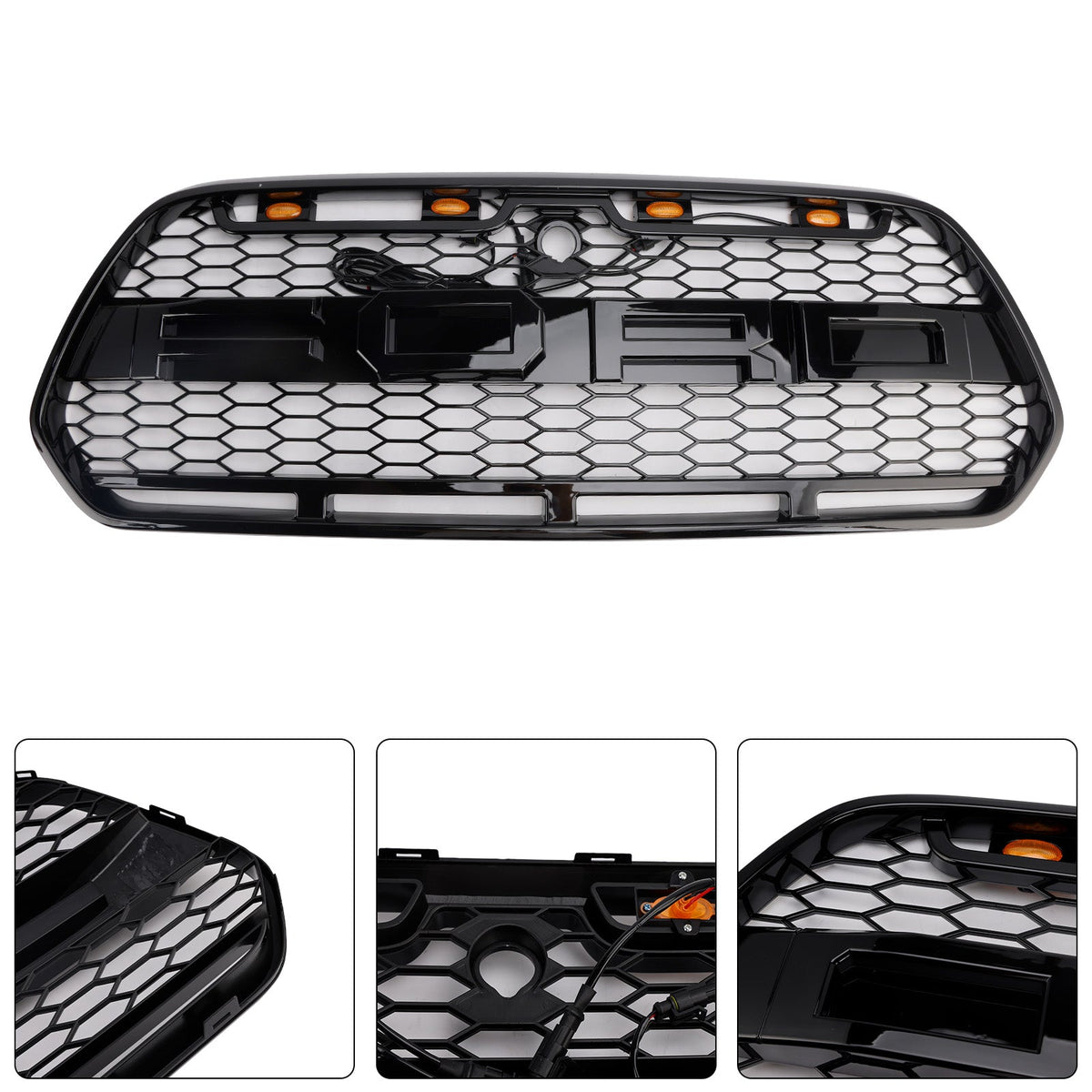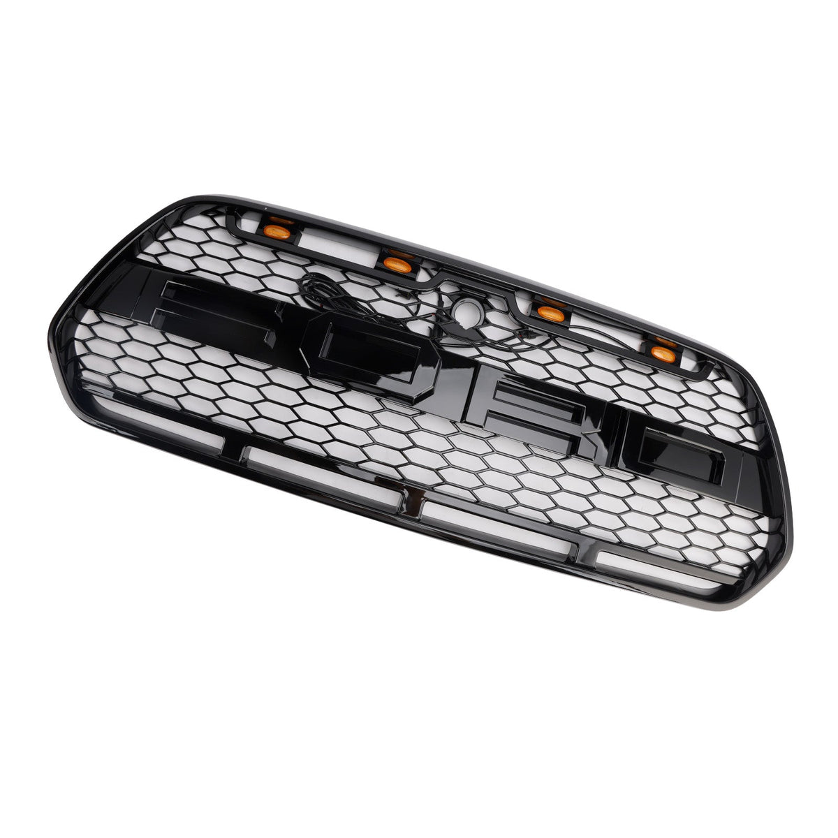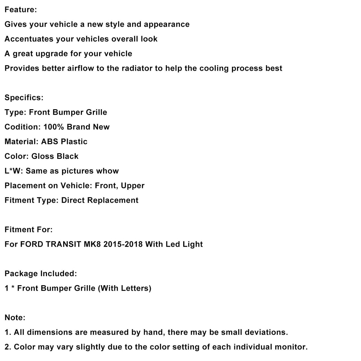 グロスブラック フロントバンパーグリル フォードトランジット MK8 2015-2018 ラプター LED付き