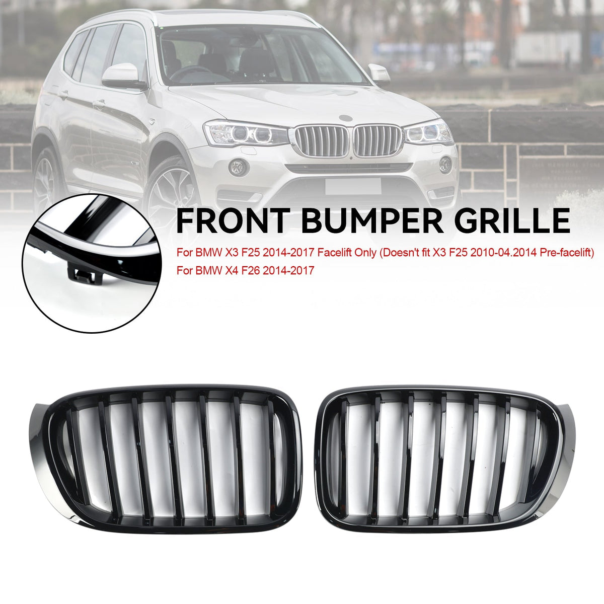 2014-2017 BMW X3 F25 フェイスリフト グロスブラック フロントバンパー キドニーグリル グリル 51117338571