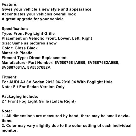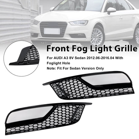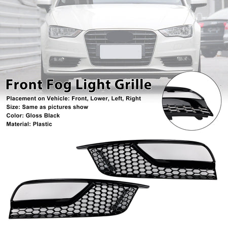 グロスブラックフロントフォグランプグリルカバー、アウディA3 8Vセダン2013-2016に適合