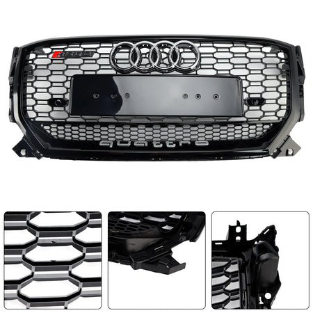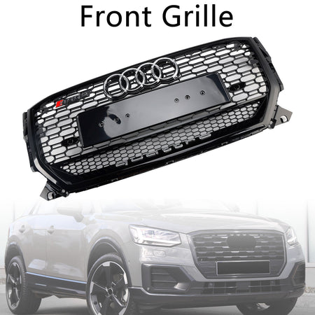 アウディ Q2 2016-2020 プレフェイスリフト用グロスブラックフロントハニカムグリル