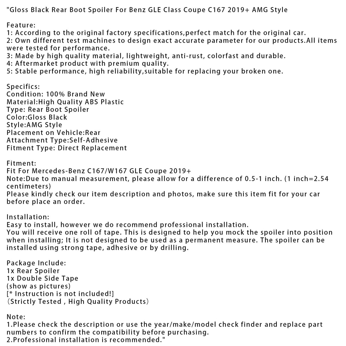 ベンツ GLE クラス クーペ C167 2019+ AMG スタイルに適合するグロスブラック リアブートスポイラー