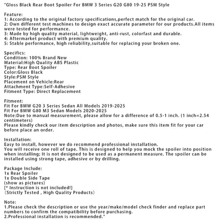 BMW 3シリーズ G20 G80 19-25 PSMスタイル用 グロスブラック リアブートスポイラー
