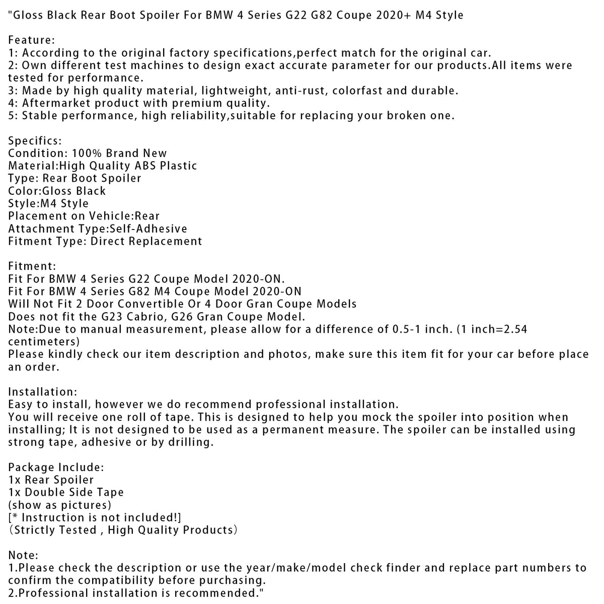 グロスブラックリアブートスポイラー BMW 4シリーズ G22 G82 クーペ 2020+ M4スタイルに適合