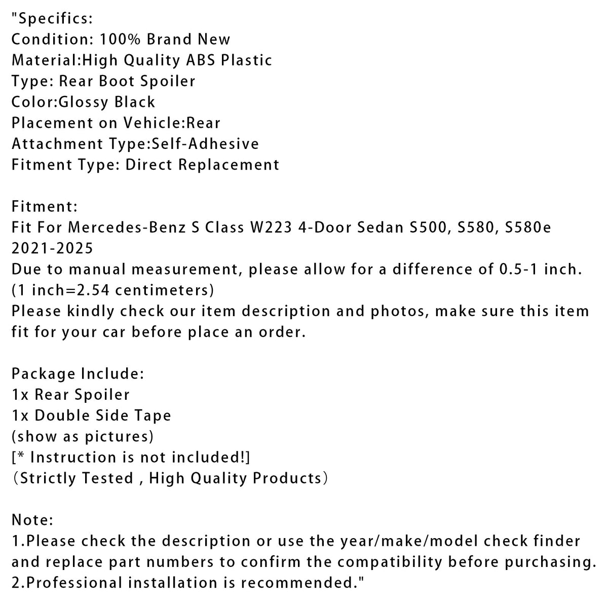 メルセデス・ベンツ Sクラス W223 2021-2025 用 グロスブラック リアトランクスポイラー