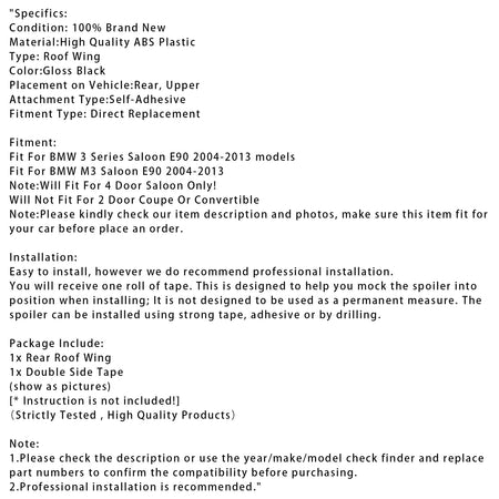 BMW 3シリーズ E90 2005-2012用 グロスブラック リアルーフスポイラー ウィンドウウィング