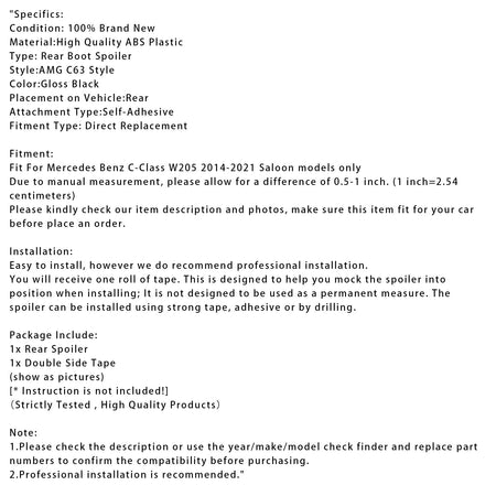メルセデス・ベンツ Cクラス W205 14-21 AMG C63スタイル用 グロスブラック リアスポイラー