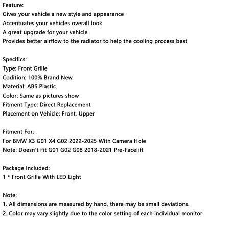 光沢のあるブラックのフロントバンパーキドニーグリルはBMW X3 G01 X4 G02 2022-2025に適合します。