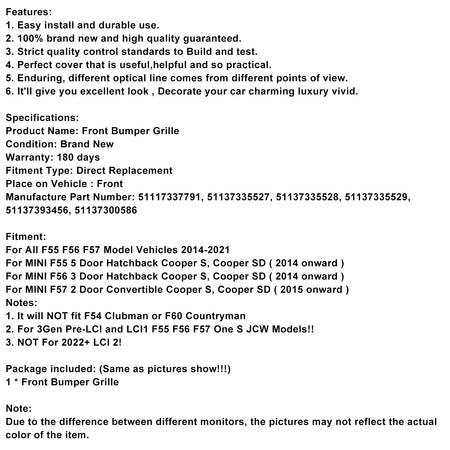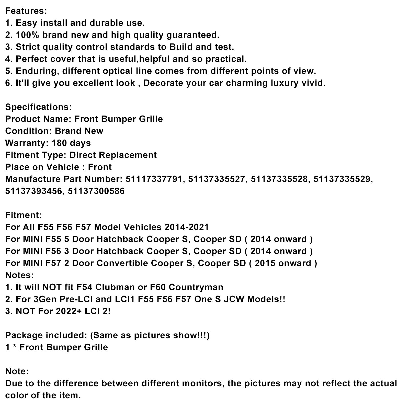 GPスタイル グロスブラック レッドトリム フロントグリル ミニクーパー F55 F56 F57 2014-2021年モデルに適合
