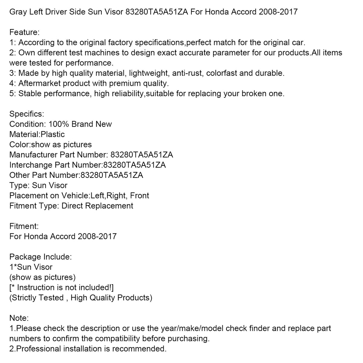 グレー 左運転席側サンバイザー 83280TA5A51ZA ホンダアコード 2008-2017年式用