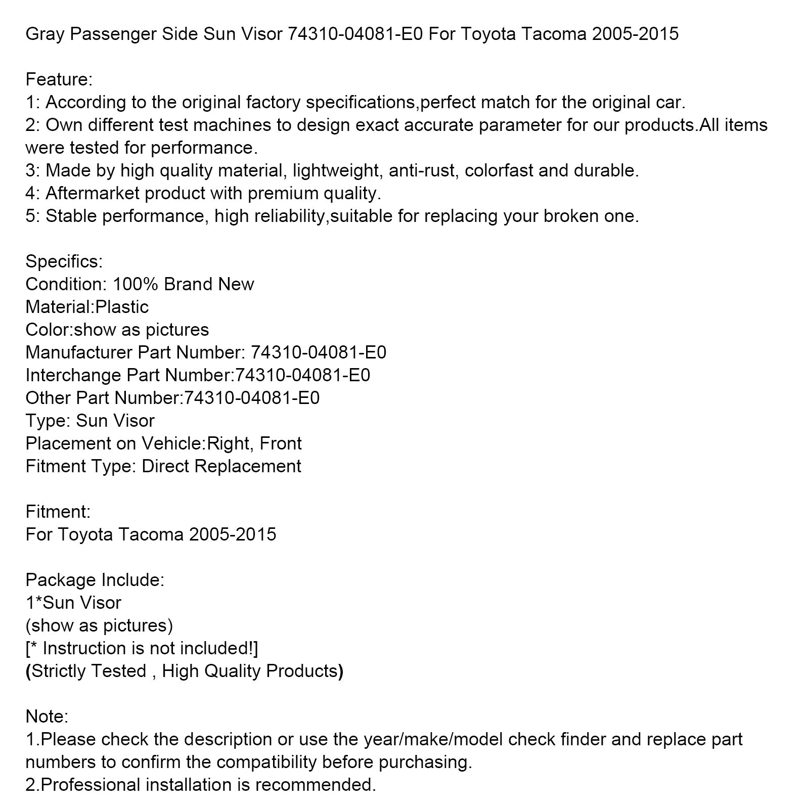 グレー 助手席側サンバイザー 964013TA2A 日産アルティマ 2013-2018用