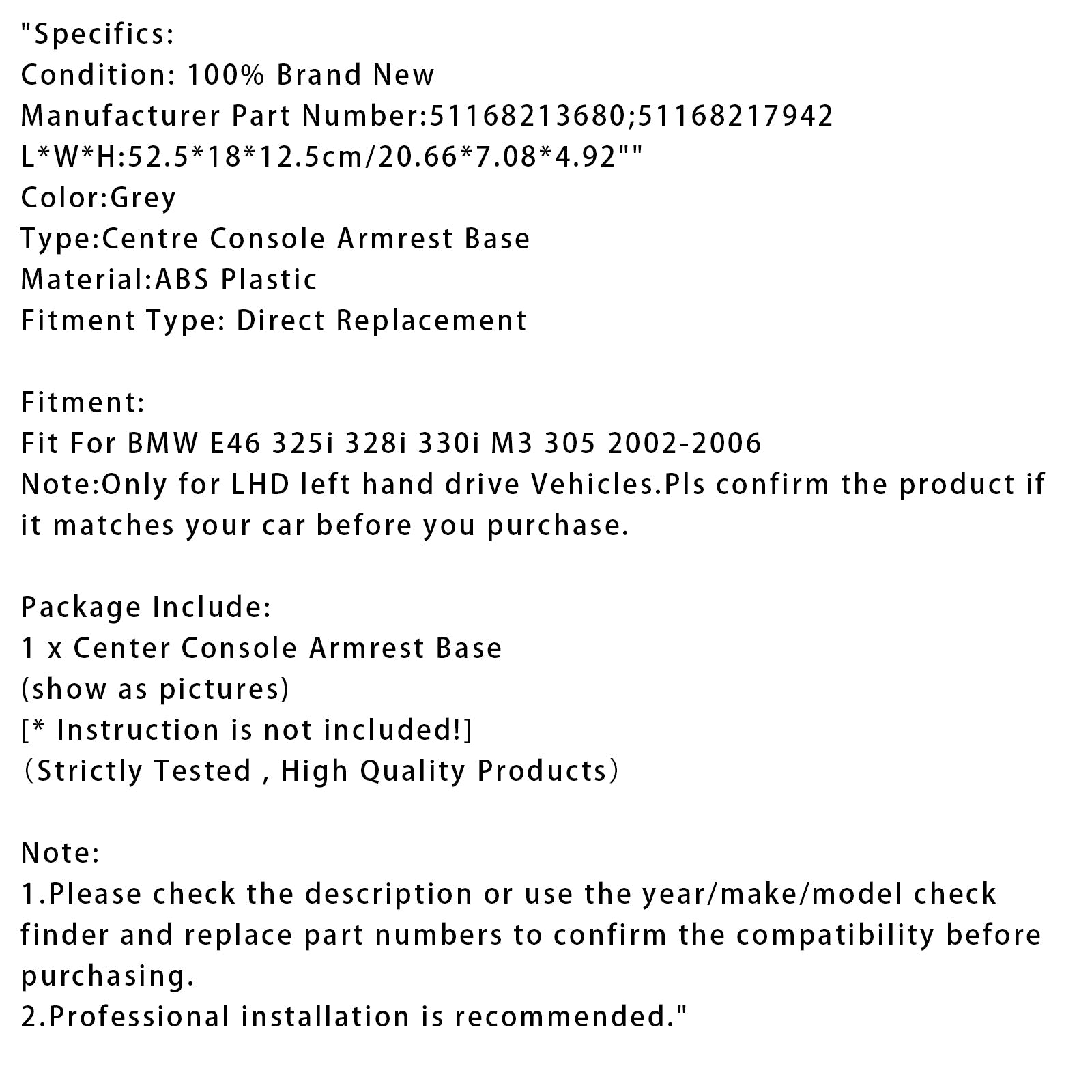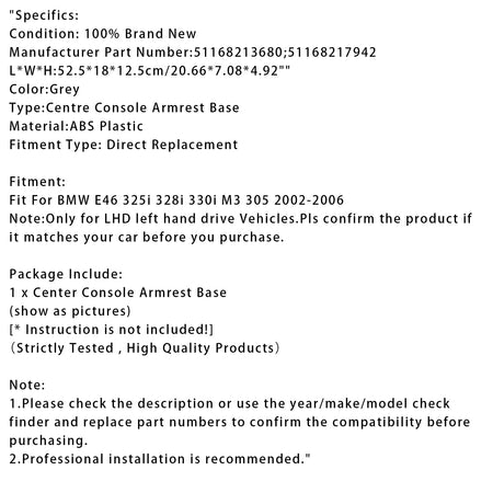 BMW E46 325i 328i 2002-2006用 グレー センターコンソールアームレストトリムベース 51168213680