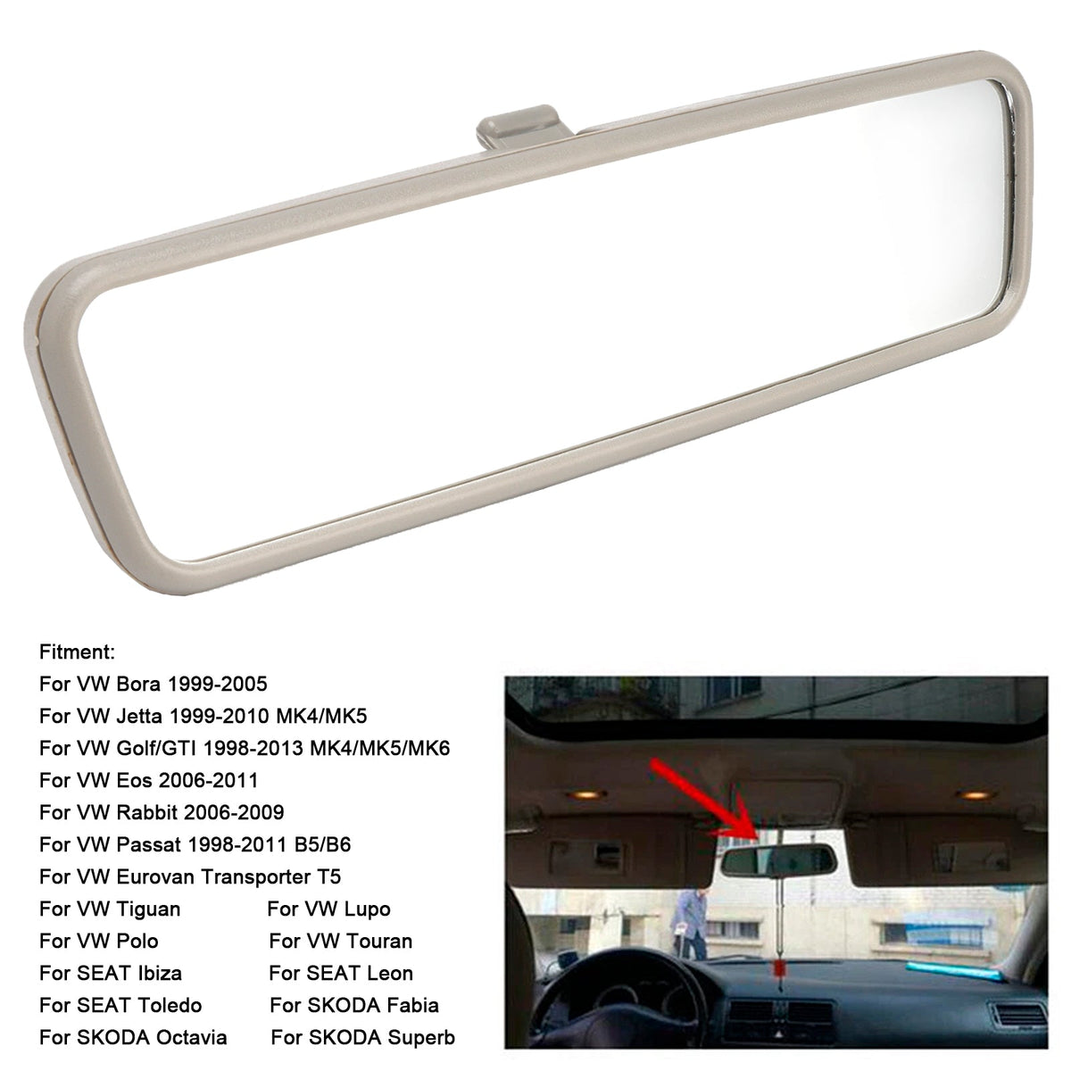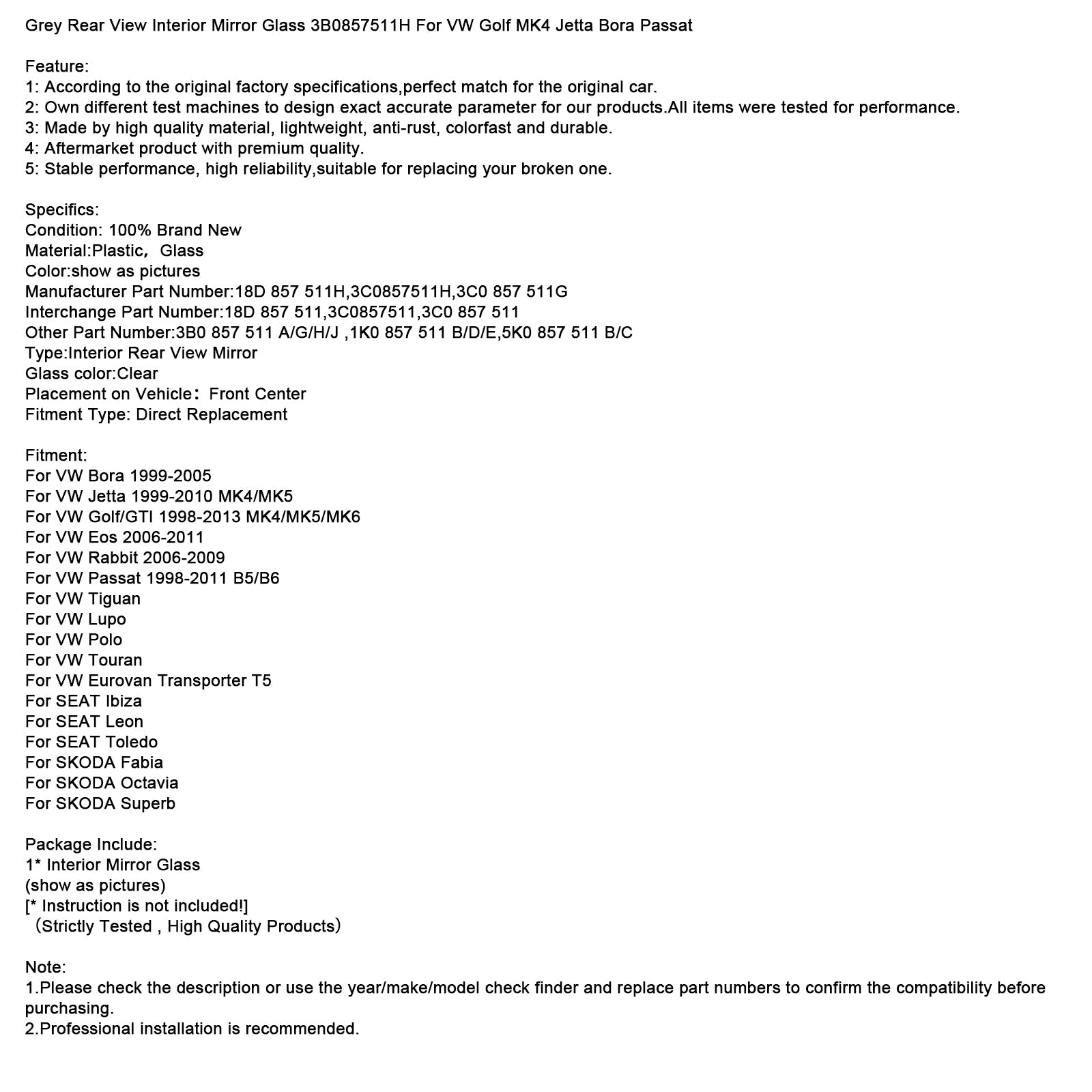 グレー リアビュー インテリアミラーガラス 3B0857511H VW ゴルフ MK4 ジェッタ ボーラ パサート用