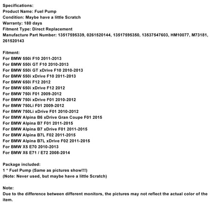 高圧燃料ポンプ 13517595339 BMW F01 F10 E70 X5 E70 V8 4.4Lに適合