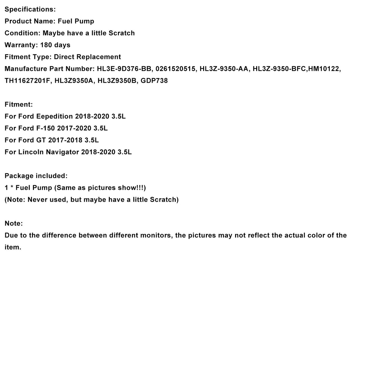 高圧燃料ポンプ HL3E-9D376-BB フォード F150 V6 3.5L 2017-2019 に適合