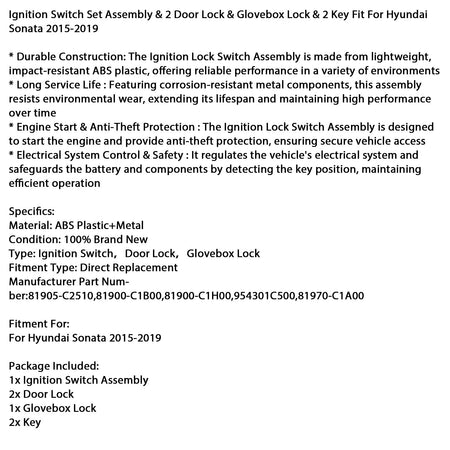 イグニッションスイッチセットアセンブリ、ドアロック2個、グローブボックスロック、キー2個、ヒュンダイ ソナタ 2015-2019 に適合