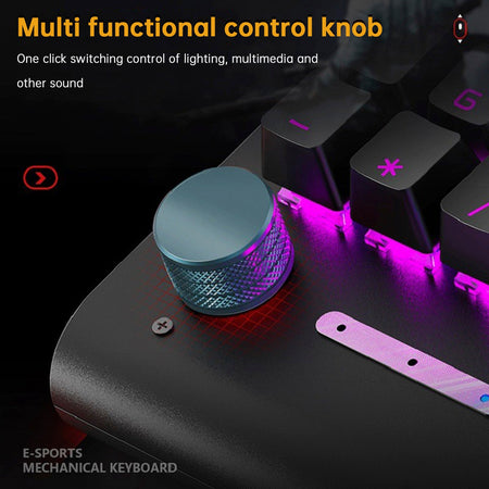 4. 多機能ノブ、ワンボタンでデュアルモード調整。わずかに回すだけで音量を調整し、キーボードの照明効果を切り替えることができるため、ゲーム中の集中力を高めることができます。
