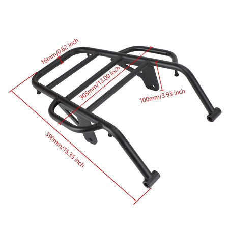 この頑丈なラックは 16 mm のスチールパイプで作られており、取り付けキットを取り付けたあらゆるパニアバッグを取り付けられるように設計されています。
