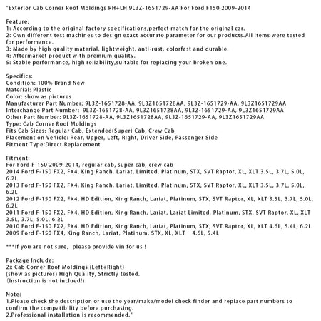 外装キャブコーナールーフモールディング RH+LH 9L3Z-1651729-AA フォード F150 2009-2014用