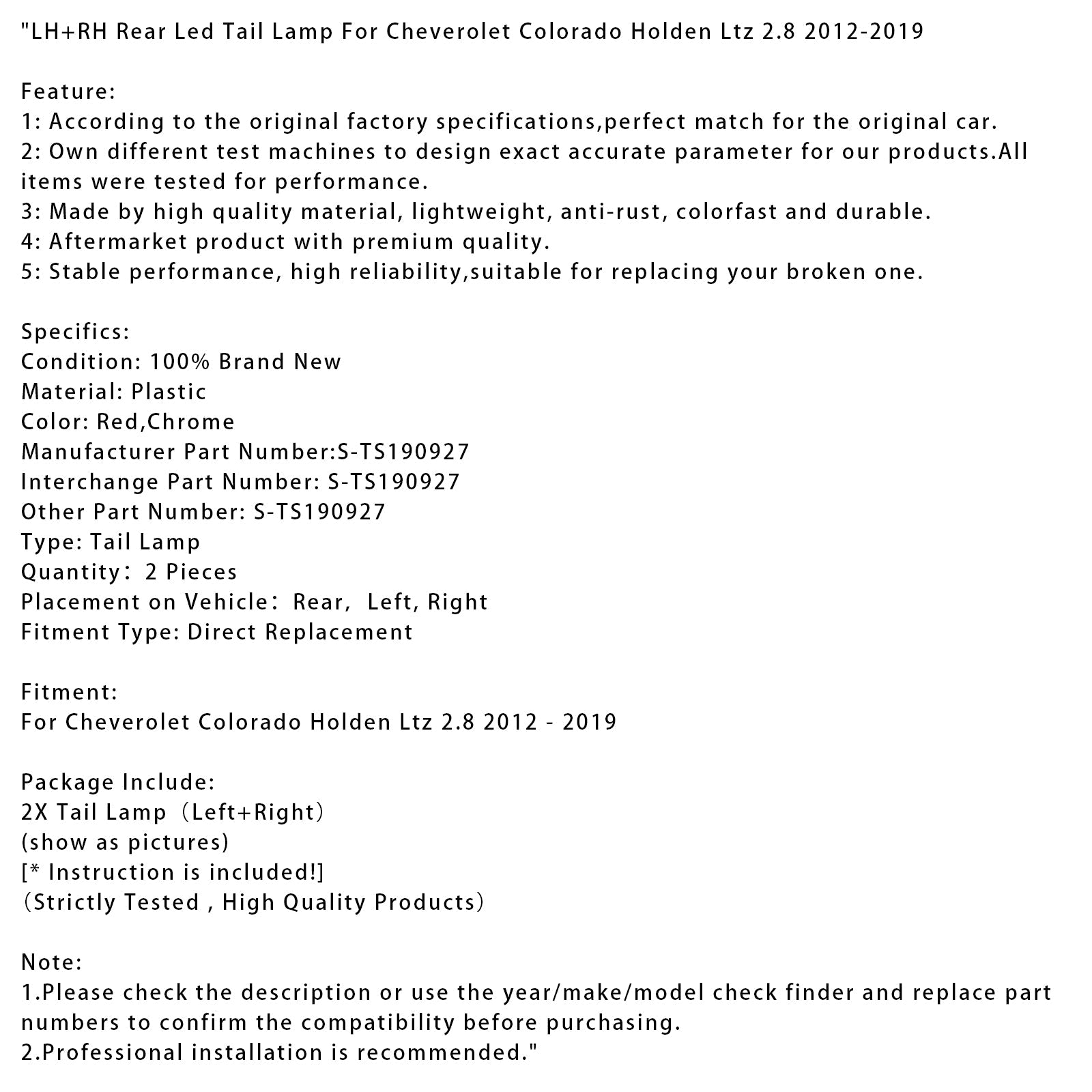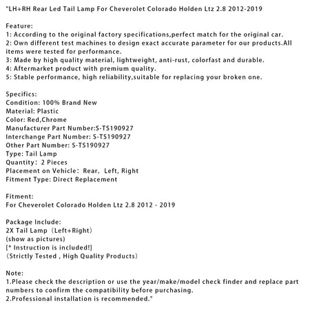 シボレー コロラド ホールデン Ltz 2.8 2012-2019 用 LH+RH リア LED テールランプ