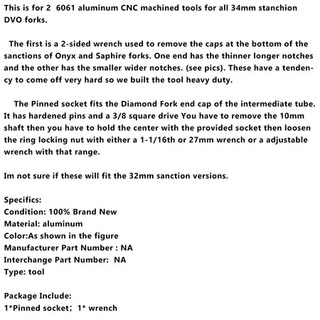 これは、すべての 34mm スタンション DVO フォーク用の 2 つの 6061 アルミニウム CNC 機械加工ツールです。