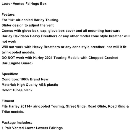 2014-2024 ツーリングロードストリートグライド ロワーベントフェアリングボックス