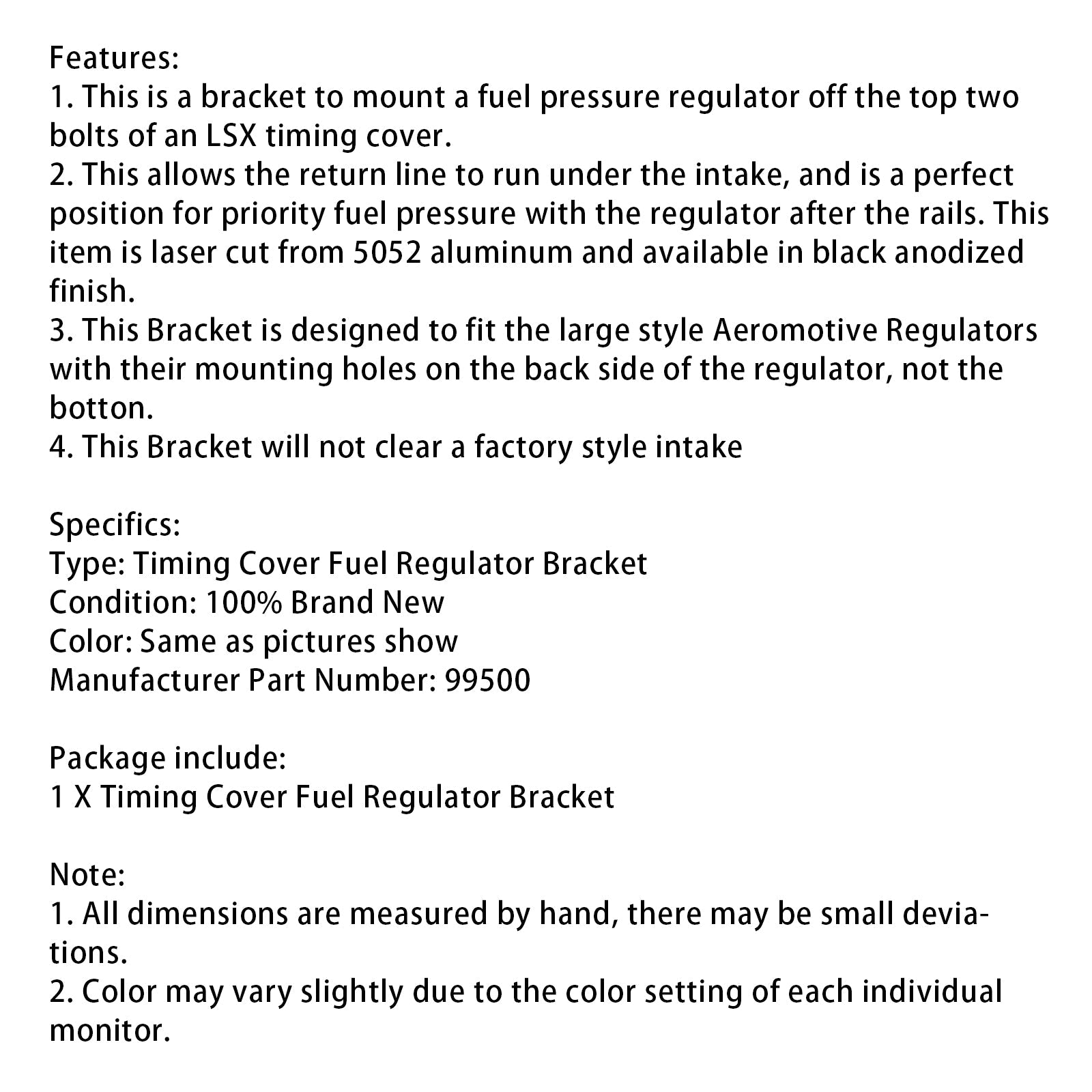 2. これにより、リターンラインを吸気口の下を通すことができ、レール後のレギュレーターで優先的な燃料圧力を得るのに最適な位置になります。この製品は5052アルミニウムからレーザーカットされており、ブラックアルマイト仕上げでご利用いただけます。
