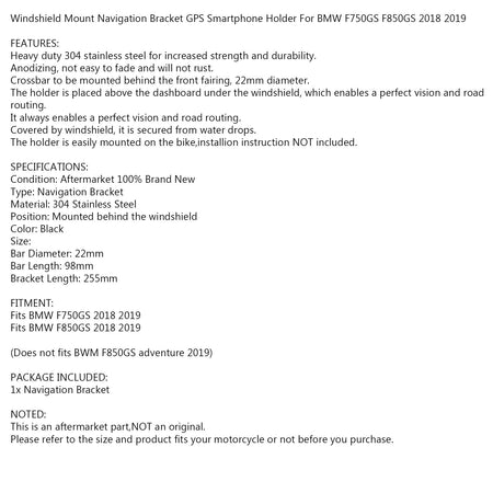 BMW F750GS F850GS 2018 2019用 フロントガラスマウントナビゲーションブラケット GPSスマートフォンホルダー