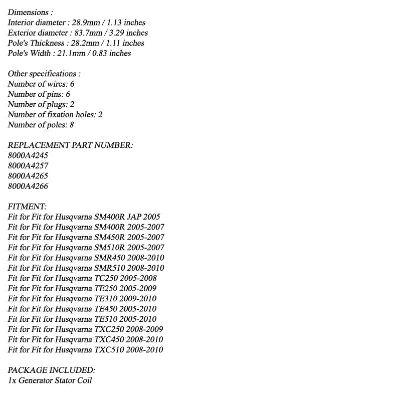 HUSQVARNA TC TE SMR TXC 250 450 510 8000A4265 汎用ステーター ジェネレーター オルタネーター
