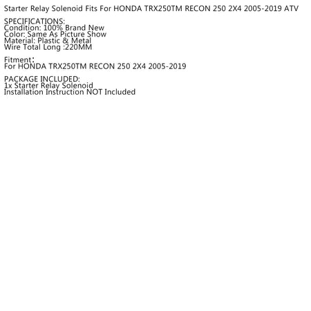 スターターソレノイドリレーはホンダTRX250TM TRX250 TM RECON 250 2005-2019 08 09に適合します。