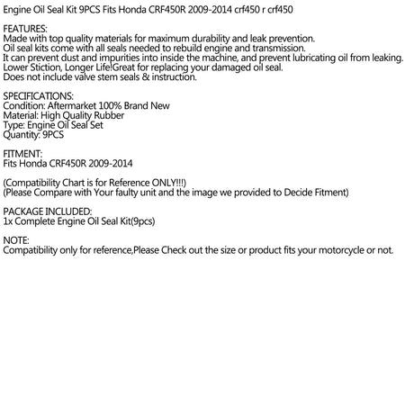 エンジン オイル シール キット 9PCS ホンダ CRF450R 2009-2014 crf450 r crf450 に適合