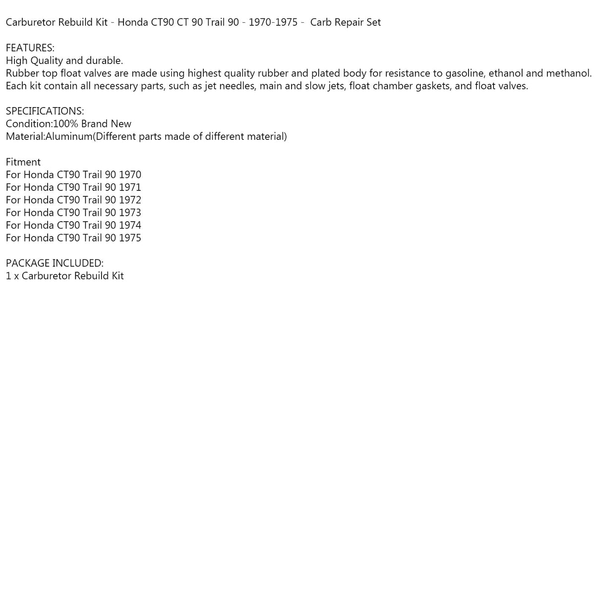 キャブレター リビルド 修理セット ジェットキット ホンダ 1970-1975 CT90 CT 90 Trail 90 汎用