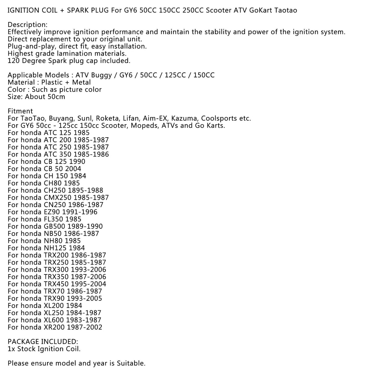 イグニッションコイル+スパークプラグ GY6 50CC 150CC 250CC スクーター ATV ゴーカート Taotao