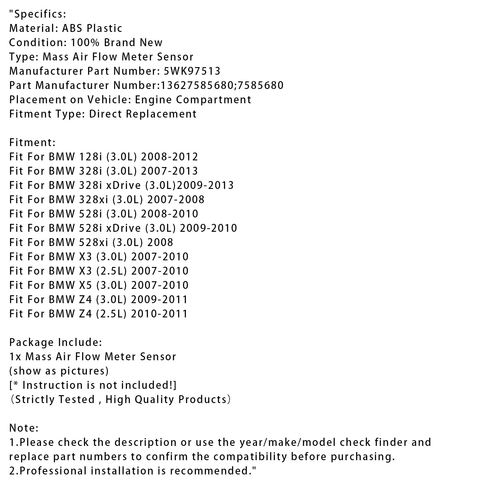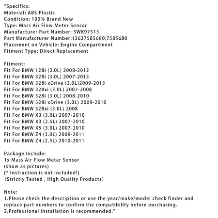 BMW 128i 328i X3 X5 Z4 13627585680用マスエアフローメーターセンサー