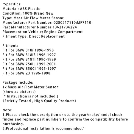 BMW 318i 318ti 750iL 850Ci Z3 0280217110用 マスエアフローメーターセンサー