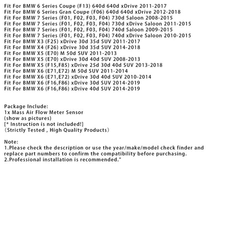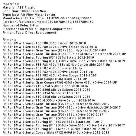 BMW 330d 525d 530d X3 X4 13627804150用マスエアフローメーターセンサー