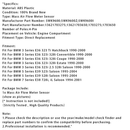 BMW E90 E91 E87 E83 Z4 0280218165用マスエアフローメーターセンサー