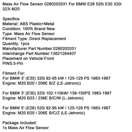 マスエアフローセンサー 0280202031 BMW E28 520i E30 320i 323i M20用