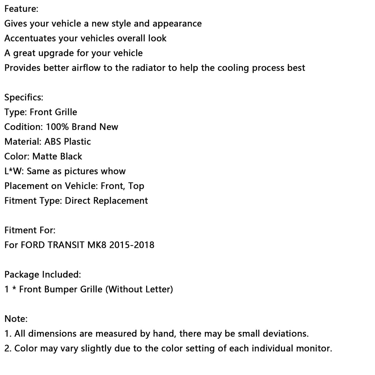 マットブラック フロントバンパーグリル グリル フォードトランジット MK8 2015-2018 ラプターに適合