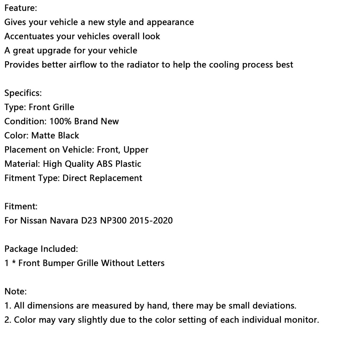 マットブラック フロントバンパーグリル グリルフィット Nissan Navara NP300 D23 2015-2020