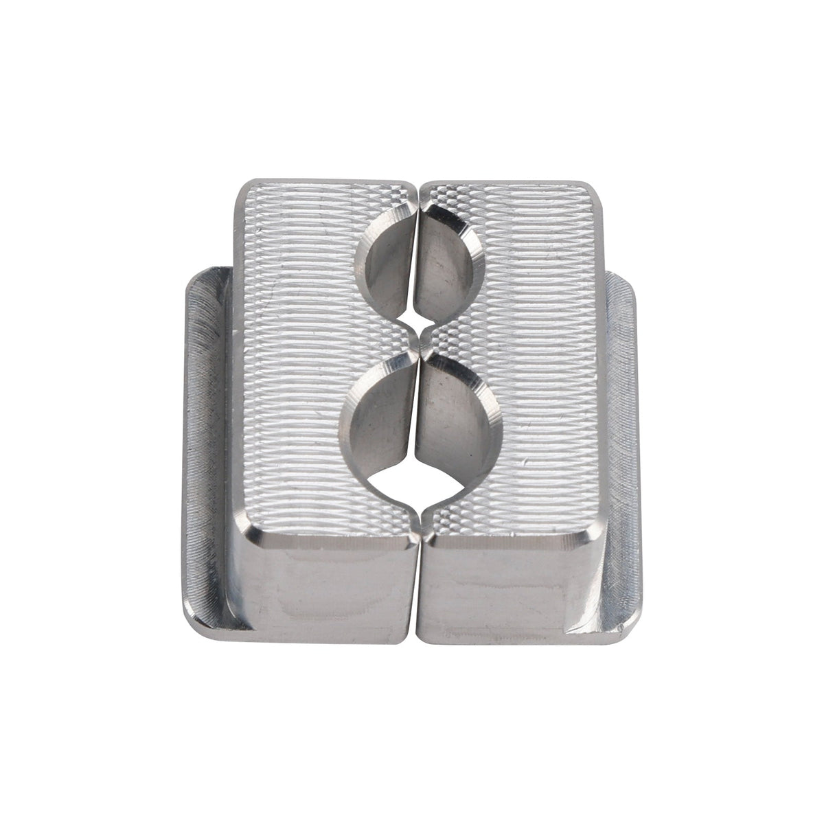 この8mm/10mmのミニクランプは省スペースで、ピンチの際には調整可能なペンチで調整できます。このクランプは、6061アルミニウムからCNC加工されており、公差の厳しいフィットを実現しています。通常、より高い保持力を得るために、クリアランスは約0.003mmしかありません。このクランプは、フォークとショックのリビルドに必須です。このクランプは、FOX、Rockshox、Manitou、DVOの多くのフォークとリアショックに適合します。用途に適合することをご確認ください。厚さは0.620mmです。