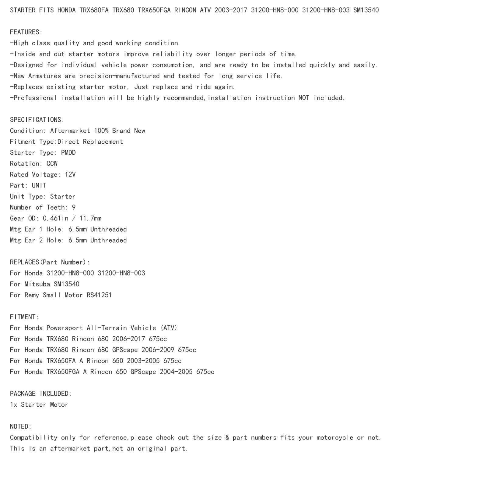 適合:ホンダ TRX680 リンコン 680 2006-2017 ATV 675cc用
