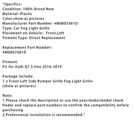 アウディ Q7 S-Line 2016-2019 用 オリジナル フォグランプグリル 左側 4M0807681D