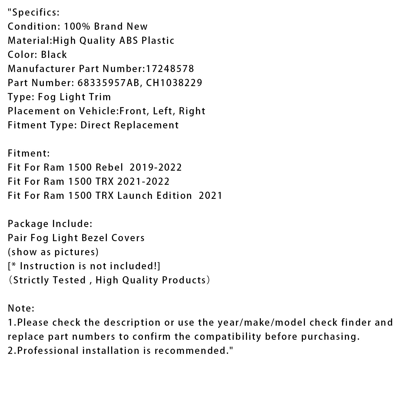 ペアフォグライトトリムドライビングランプフレームラム1500 Rebel 2019-2022に適合68335957AB